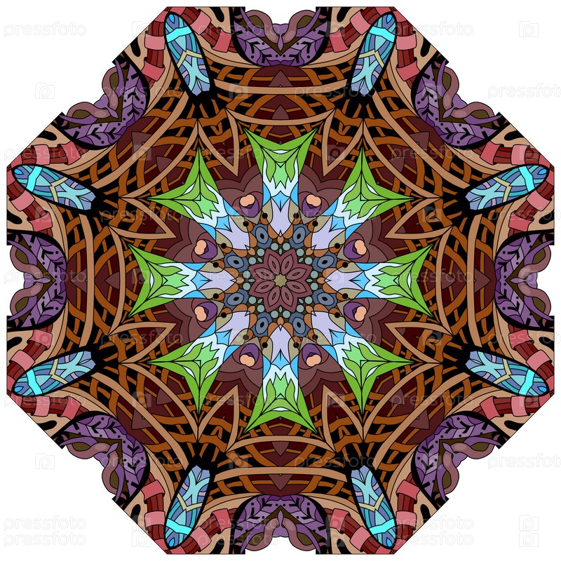 Декоративные круглые украшения. Необычная форма цветка. Восточный вектор, схемы антистрессовой терапии. Переплетение элементов дизайна. Вектор логотипов йоги