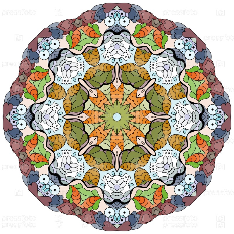 Декоративные круглые украшения. Необычная форма цветка. Восточный вектор, схемы антистрессовой терапии. Переплетение элементов дизайна. Вектор логотипов йоги