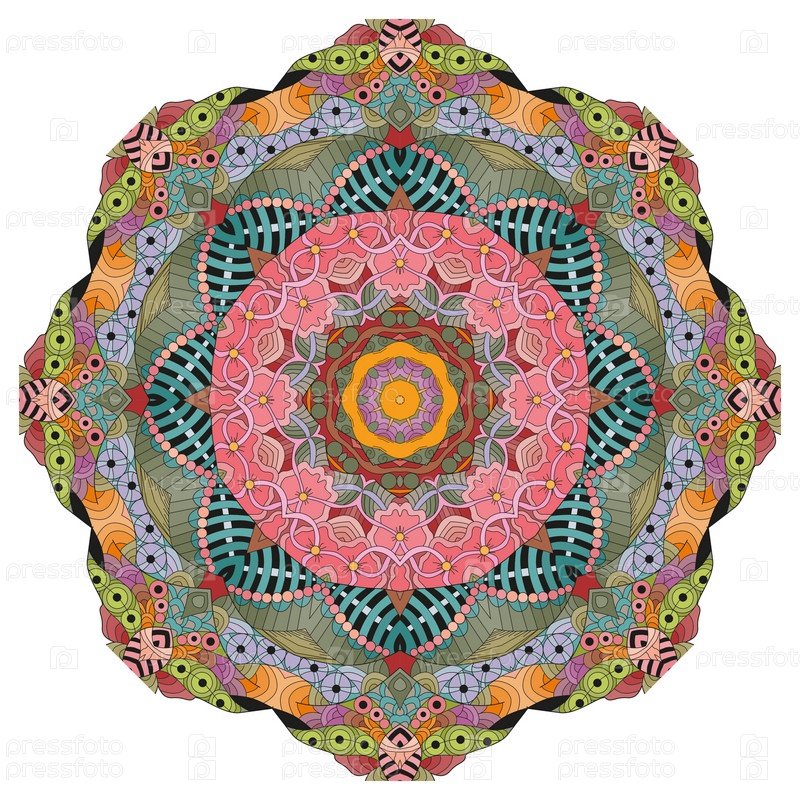 Декоративные круглые украшения. Необычная форма цветка. Восточный вектор, схемы антистрессовой терапии. Переплетение элементов дизайна. Вектор логотипов йоги
