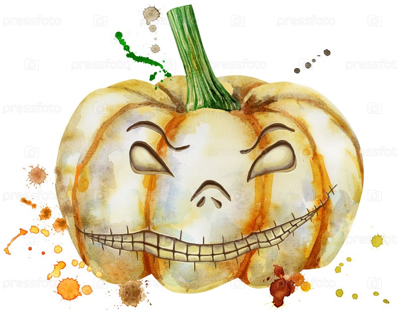 Тыква хеллоуина белая с вкраплениями. Акварельная живопись. Ручное искусство