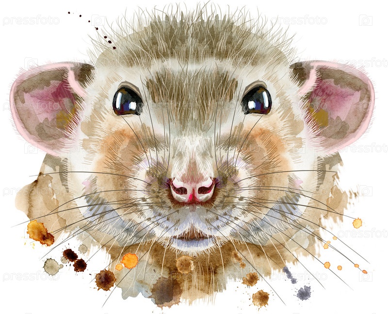 Акварельный портрет крысы с брызгами