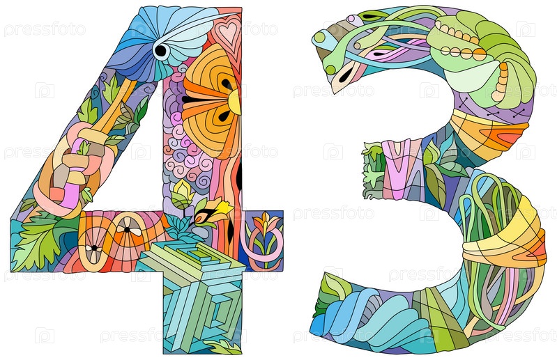 Сорок три числа Изолированная иллюстрация зентегла для украшения