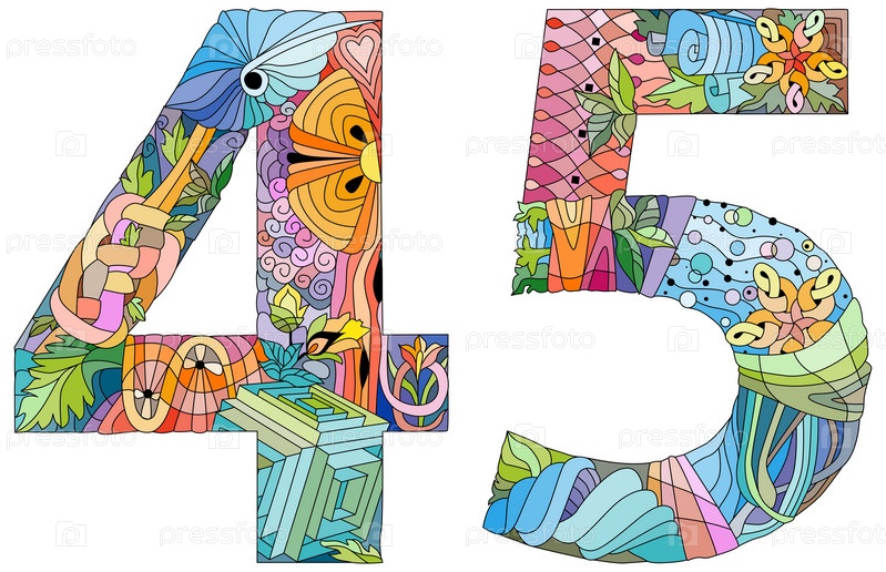 45-значный винтажный шрифт. Дизайн гравировки. Векторная иллюстрация