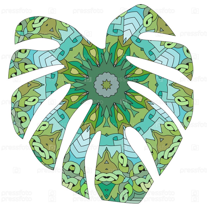 Лист монстеры. Ретро-зентангл, стилизованный под вектор