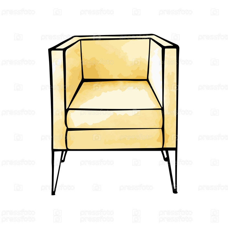 Эскиз домашнего кресла. Предмет для домашнего интерьера. Векторная иллюстрация. Контурный рисунок стула