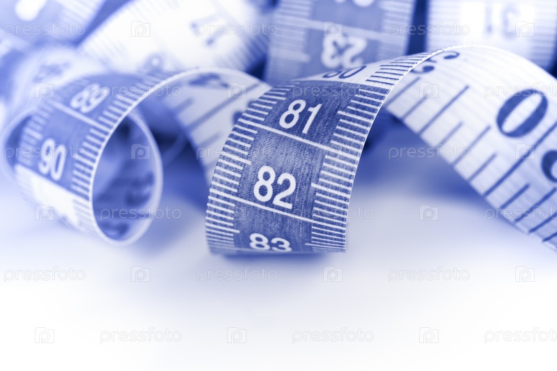 Сантиметровая лента, скрученная. Изображение в синих тонах, крупный план