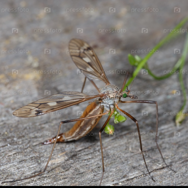 Длинноногий комар (карамор) с изумрудными глазами. макросъемка