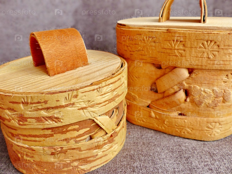 Туесок - небольшая берестяная коробочка с крышкой, для хранения сыпучих продуктов. Кухонные принадлежности. Народные промыслы России. Ретро. Изделия из бересты изготавливались большинством обществ задолго до того, как была изобретена керамика