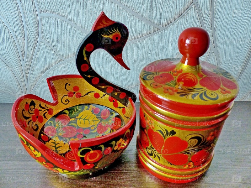 Хохлома - древний русский народный промысел XVII века, традиционные элементы которого красные сочные ягоды репчики и земляники.Русские сувениры