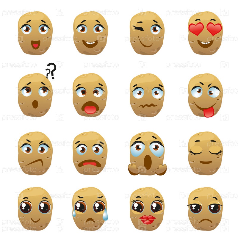 Набор векторных наклеек, смайликов с милой картошкой