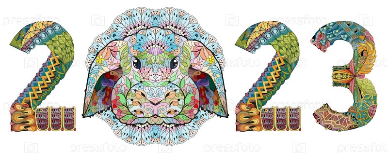 Нарисованный вручную кролик номер 2023 для футболки и других украшений