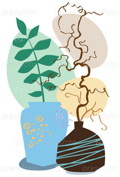 Абстрактные плакаты с вазами. Модный коллаж натюрморта с горшком, растением и вазой. Ручной рисунок минималистского набора векторов формы. Иллюстрационный горшок с цветочным изображением для декоративного интерьера