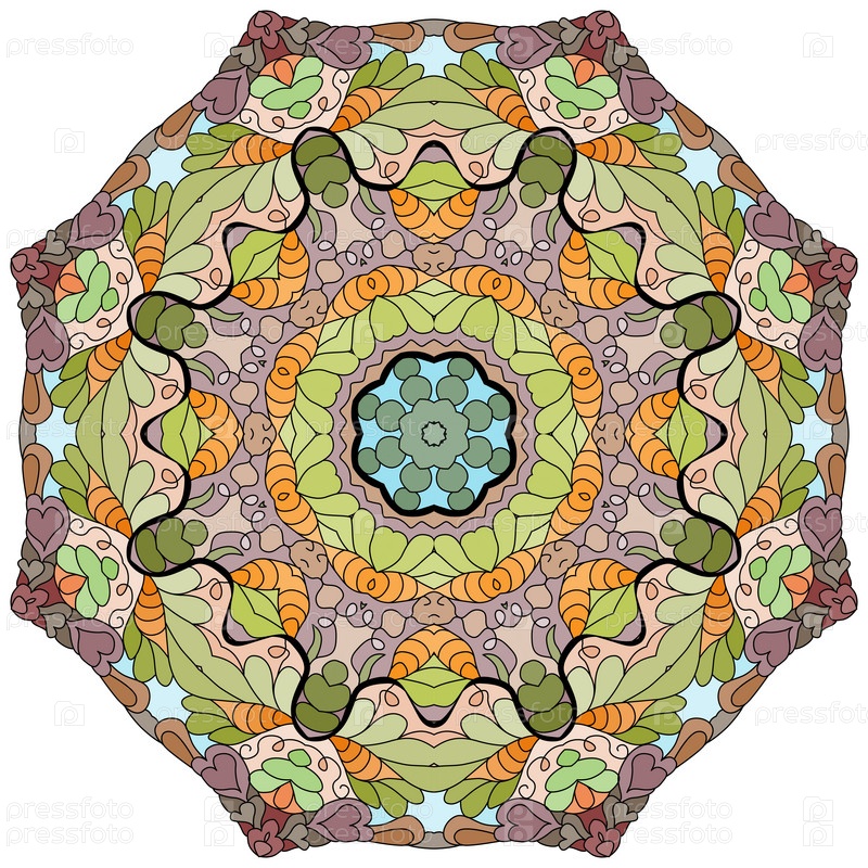 Декоративные круглые украшения. Необычная форма цветка. Восточный вектор, схемы антистрессовой терапии. Переплетение элементов дизайна. Вектор логотипов йоги
