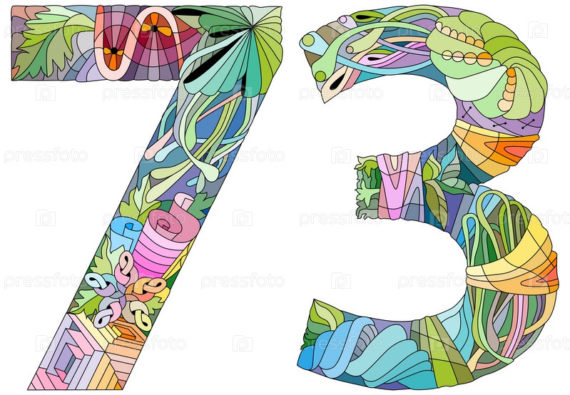 Семьдесят три числа Изолированная угловая иллюстрация для украшения
