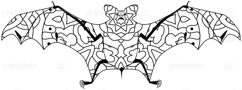 Силуэт летучей мыши. в стиле абстрактного ручного рисунка для окраски