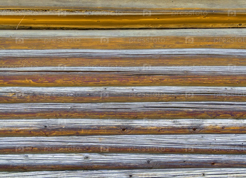 Стена сельского дома из деревянных бревен