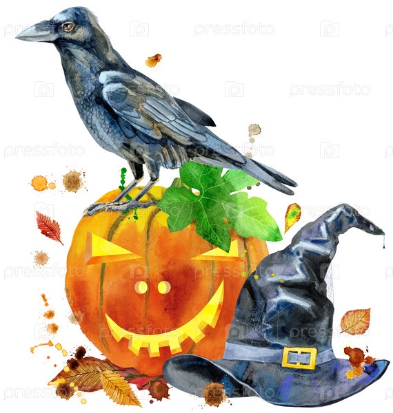 Акварель Хэллоуин. Ручной обращается праздничные иллюстрации на белом фоне