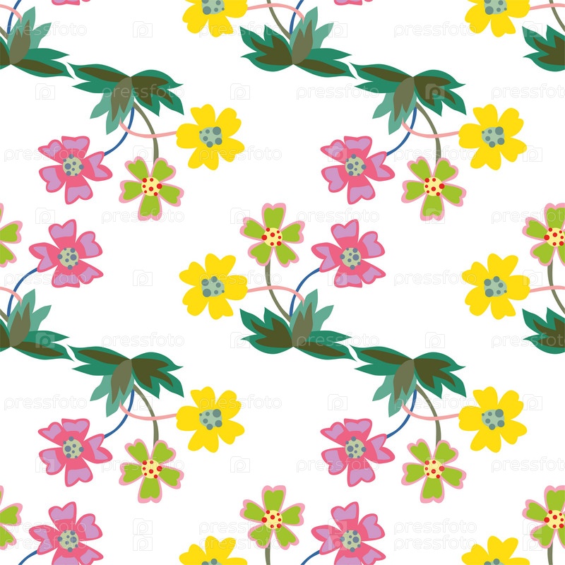 Бесшовный цветочный узор с милыми маленькими цветами на белом фоне. Векторная иллюстрация