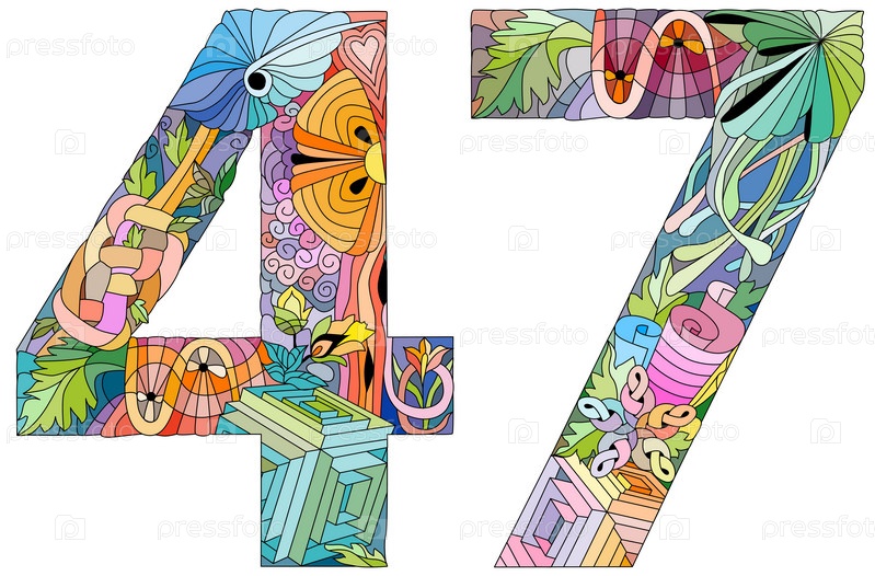 Сорок седьмое число Изолированная иллюстрация зентаглей для украшения