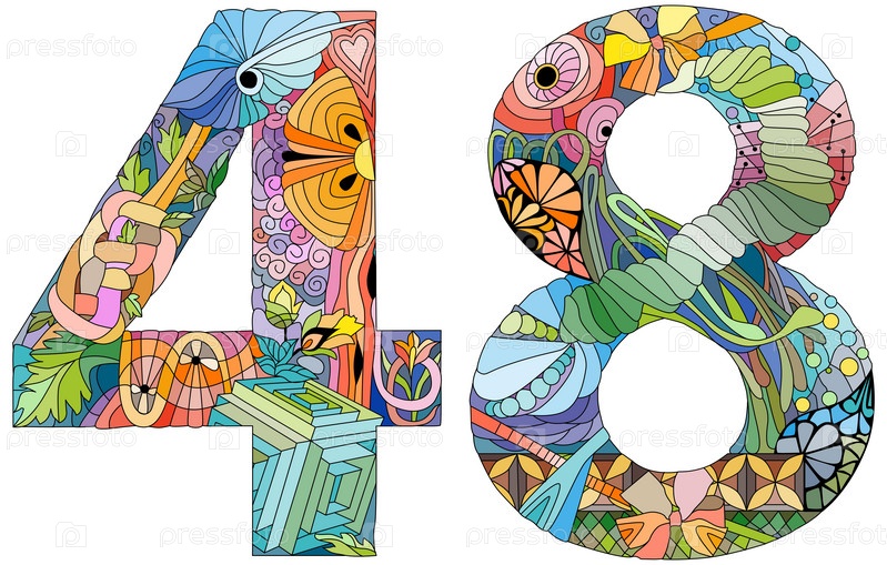 Число сорок восемь Изолированная иллюстрация зентаглей для украшения