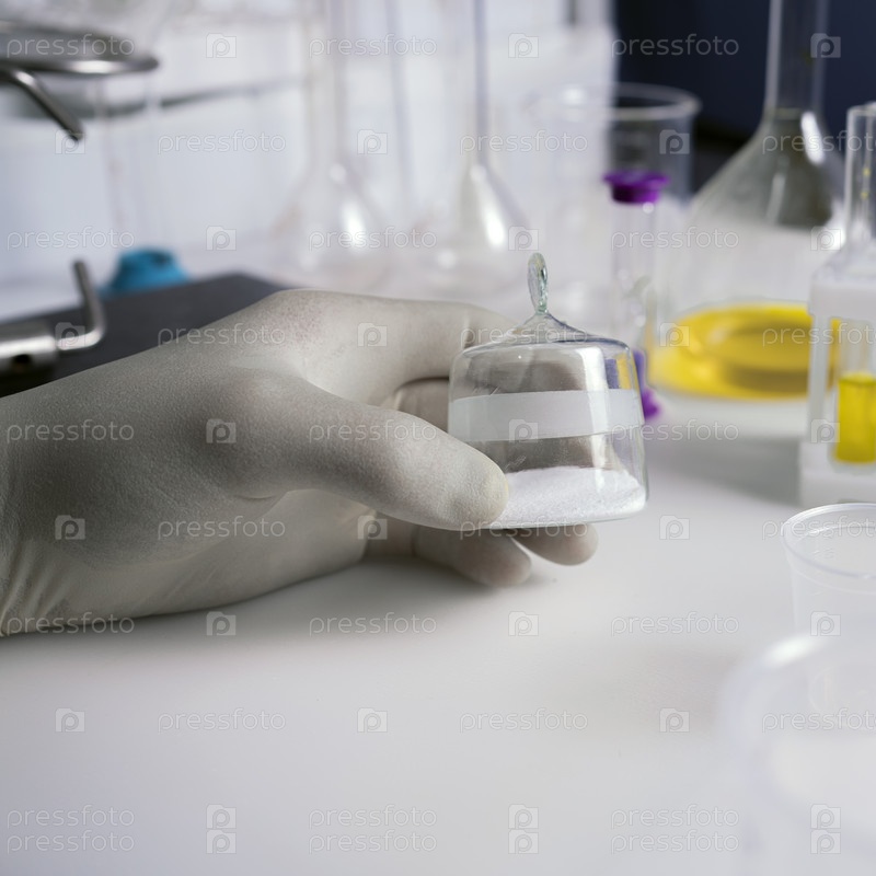 Крупный план руки ученого, работающего с лабораторными образцами пищевых добавок