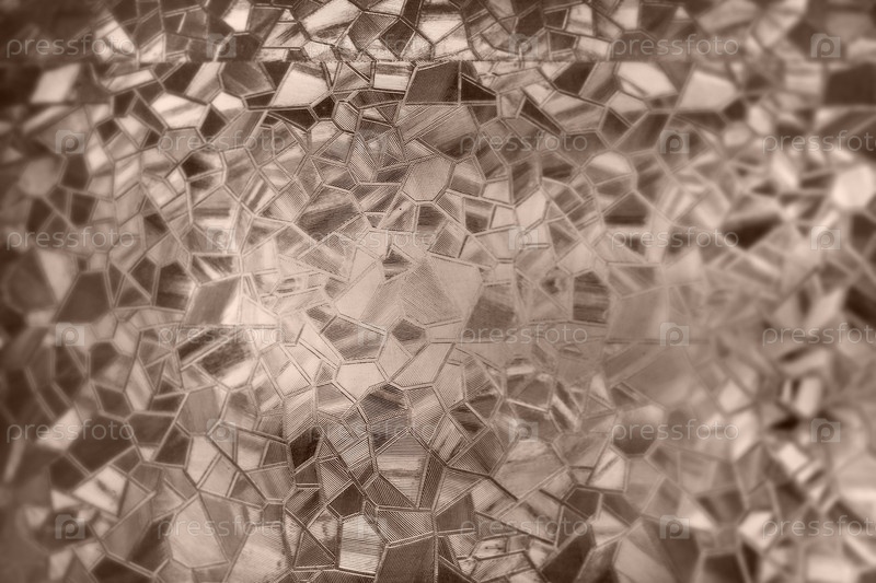 Рельефный стеклянный фон. Монохромное рифленое стекло сепия. Преломление света на неровной прозрачной поверхности при контровом свете. Игра ярких моментов. Черно-коричневые участки. Абстрактный фон