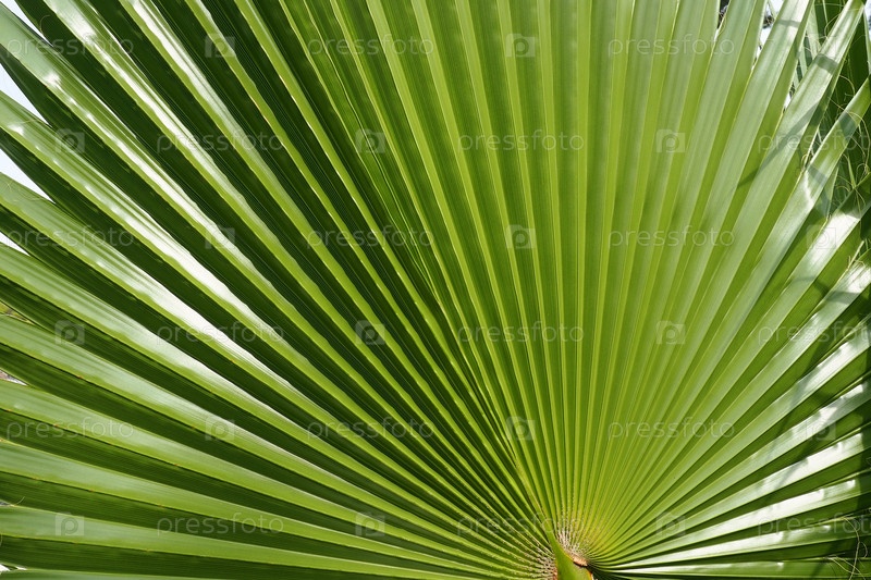 Текстура пальмовых листьев с тенью и светом. Пальмовые листья ярко-зеленого и желтого цветов. Тропический красивый фон. Летний пляжный туризм. Плиссированные листья