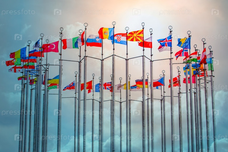 Флаги европейских государств на флагштоках