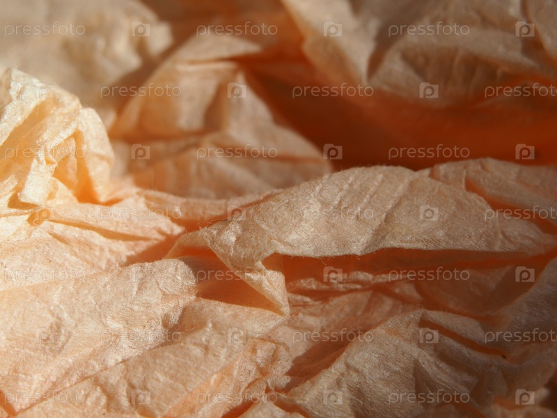 Текстура мятой мягкой бумаги розоватого цвета. Фоновая текстура мятой бумажной салфетки крупным планом