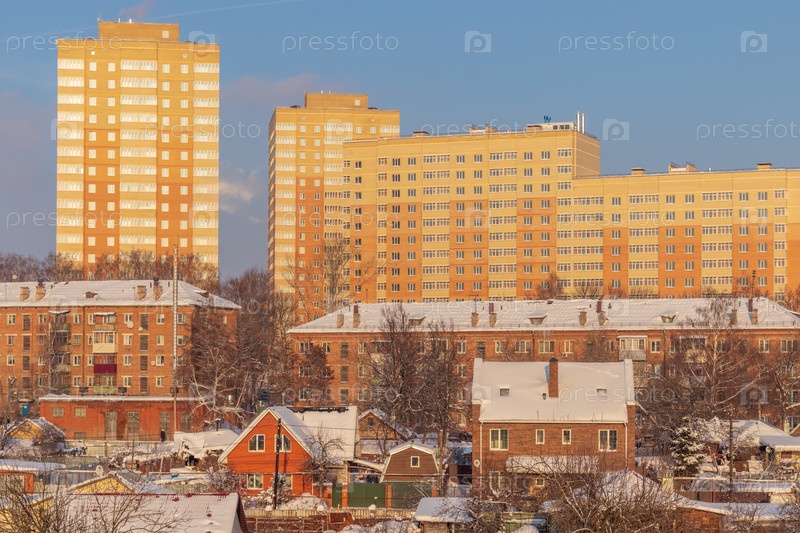 Новый жилой комплекс, построенный рядом со старым жилым кварталом. Тула, Россия