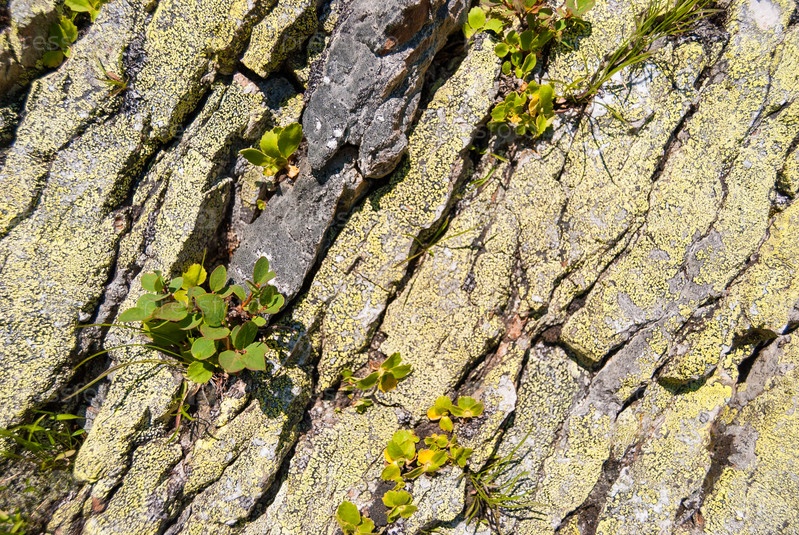 Крупный план серых скал, покрытых мхом, узор сколов, трещин. Гриндельвальд, Швейцария