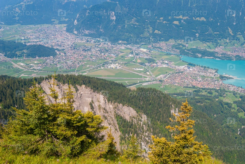 Красивая долина Интерлакен и озеро Тунерзее. Альпы Швейцарии