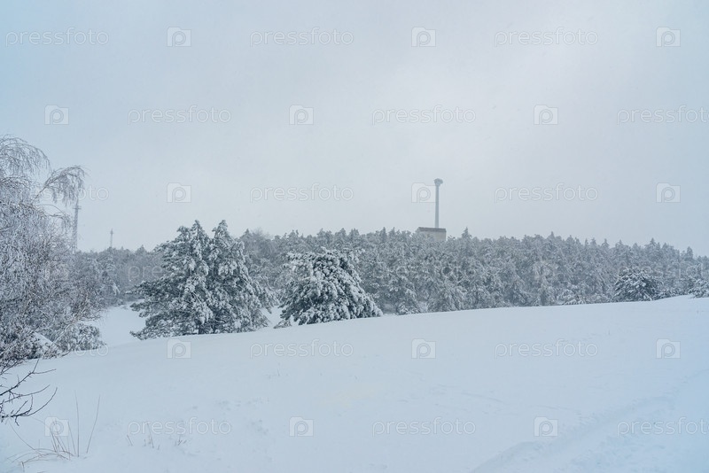 Заснеженный лес на горе Ай-Петри после метели. Крым