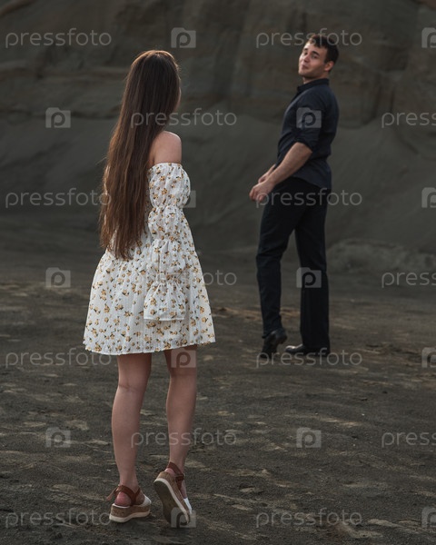Пара влюбленных на открытом воздухе на фоне серого песка