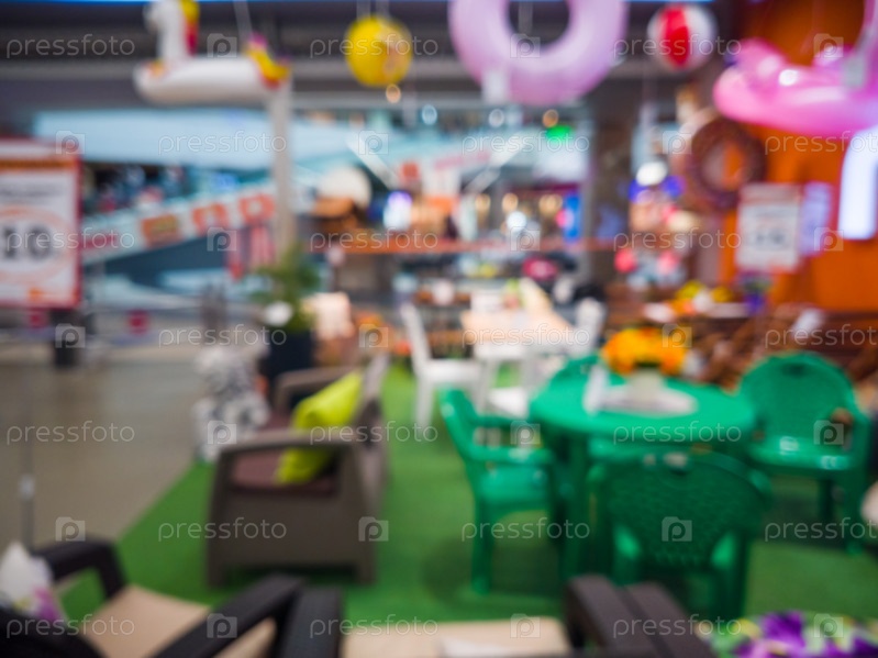 Абстрактное расфокусированное размытое изображение мебельного магазина в продаже. Отдел по продаже садовой мебели и инструментов - можно использовать для демонстрации или монтажа товара