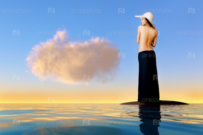 Девушка в шляпе на скале