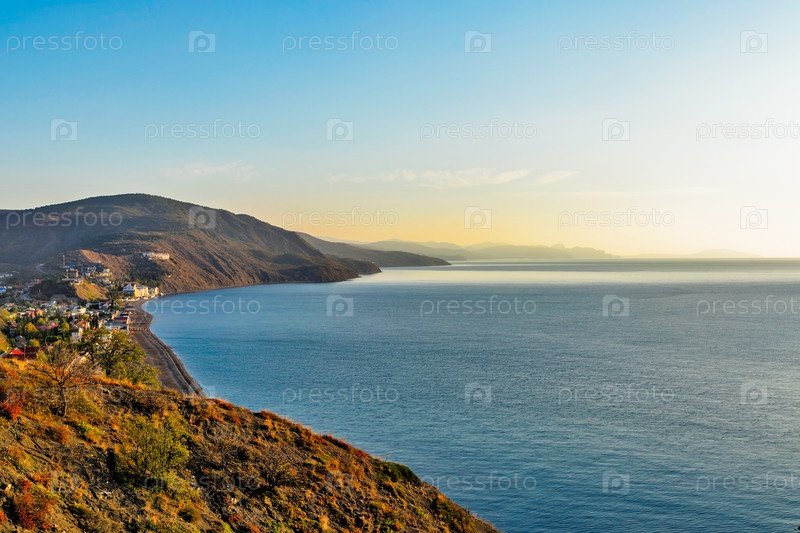 Морские горы и села в крыму летним утром