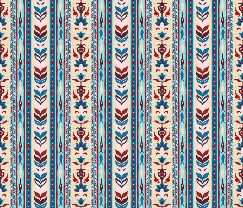 Геометрический дамасский орнамент. Икат границы. Этническая вышивка с листьями и монограммами. Племенная векторная текстура. Бесшовный народный узор в ацтекском стиле. Индийский, скандинавский, цыганский, мексиканский, африканский ковер
