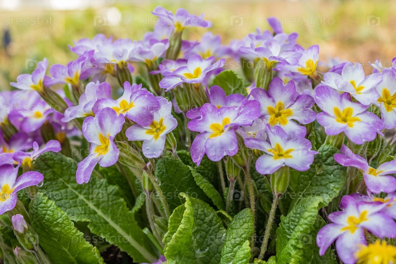 Примула Воронова весной. Красивые цвета первоцветов в весеннем саду. Многолетние первоцветы или первоцветы в весеннем саду