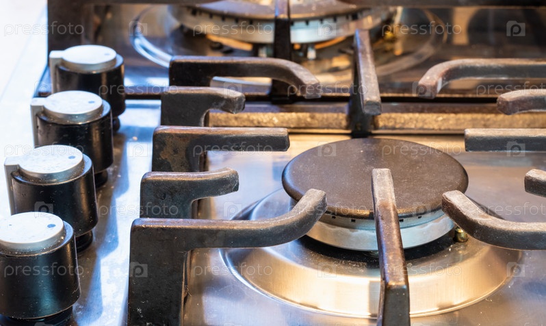 Современная газовая плита с зажженной горелкой