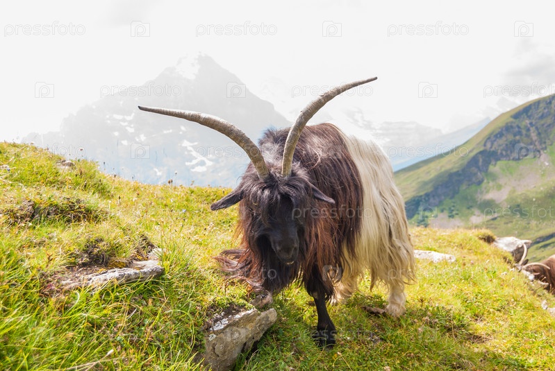 Козел на вершине крутого скалистого склона. Гриндельвальд, Швейцария