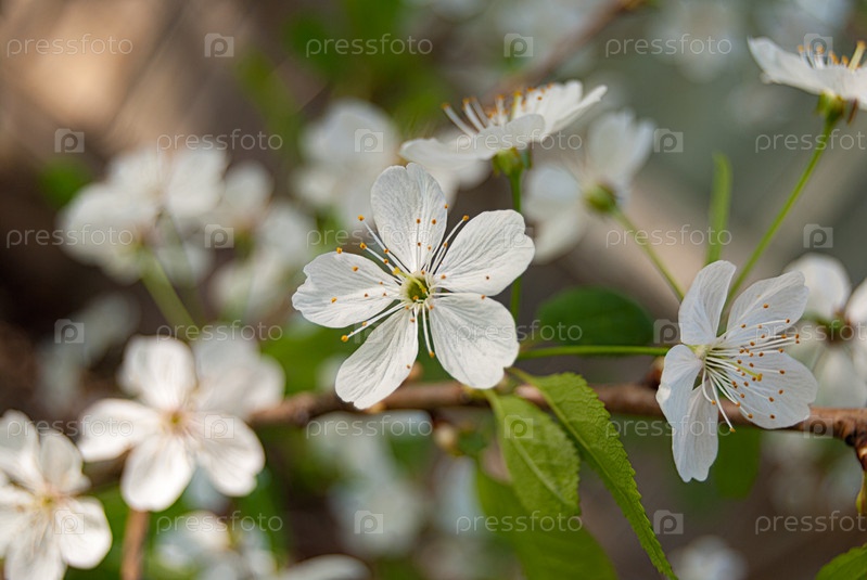 Белые вишневые цветы в весенний день в саду