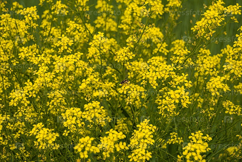 На поле цветет кресс-салат - травянистое растение семейства капустных крестоцветных, ранее известное как крестоцветные