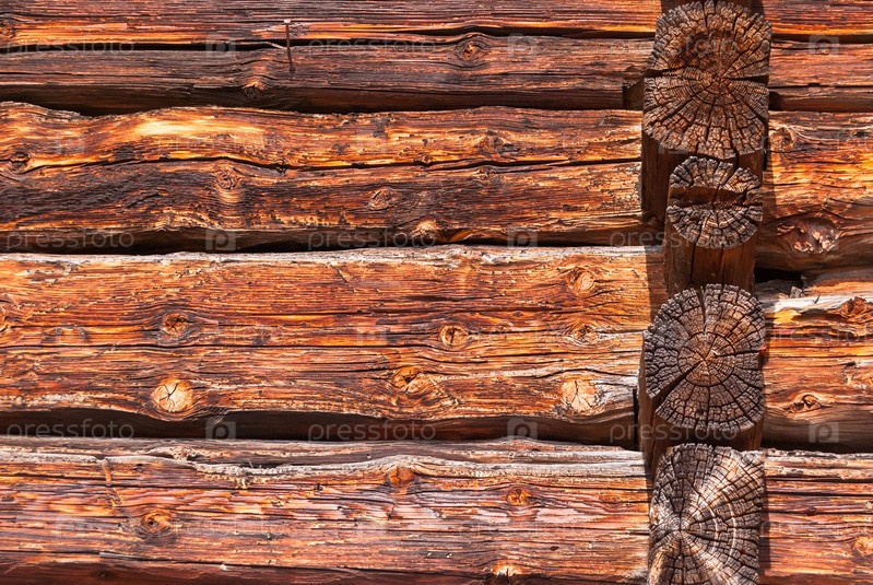 Угол старого дома собран из обработанного бруса. текстура дерева