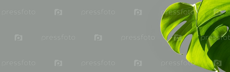 Баннер. цвет монстра в белом горшке на сером фоне. Концепция минимализма. Monstera deliciosa или швейцарская сыровая фабрика на фоне тропических листьев в горшке. резкие тени