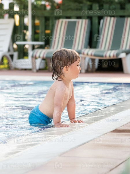 Малыш плавает в детском бассейне. Обучение детей плаванию с раннего детства. Спорт, активный образ жизни и физическое развитие