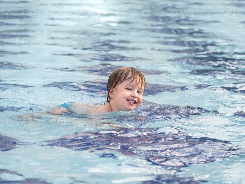 Малыш плавает в детском бассейне. Обучение детей плаванию с раннего детства. Спорт, активный образ жизни и физическое развитие