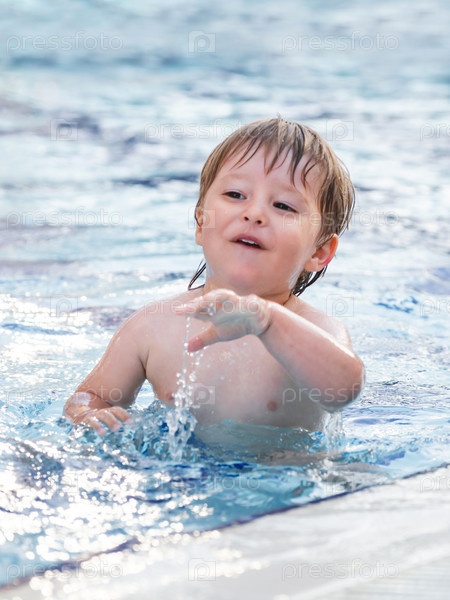 Малыш плавает в детском бассейне. Обучение детей плаванию с раннего детства. Спорт, активный образ жизни и физическое развитие