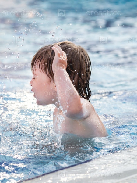 Малыш плавает в детском бассейне. Обучение детей плаванию с раннего детства. Спорт, активный образ жизни и физическое развитие