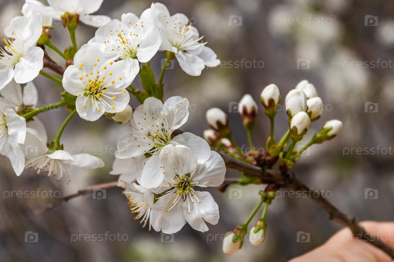 Белая вишня цветет весенним днем в саду. Прекрасный весенний день. крупным планом